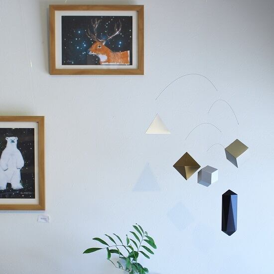 広い空間も、モビールを使って立体的なインテリアにすることで、空間が引き締まります。