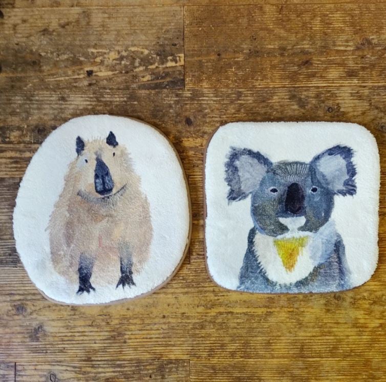 イラストは、コテツさんが一緒に生活をしている大好きな「猫」、有名なグリム童話の1シーンを描いた「ブレーメン」に加え、新柄としてカピバラ、コアラも新登場。